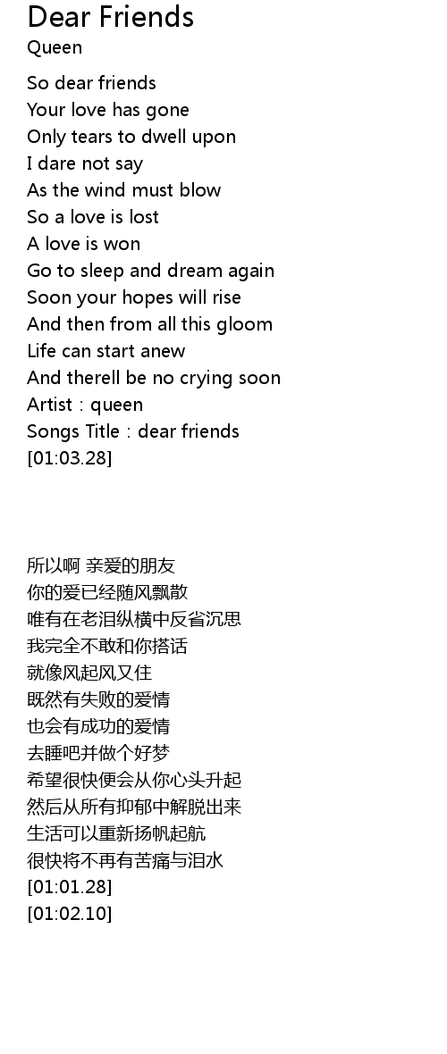 | [01:02.10] | Songs Title: dear friends |