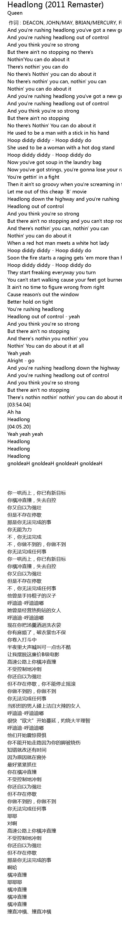 | [00:00.00] | 作词 : DEACON, JOHN/MAY, BRIAN/MERCURY, FREDDIE/TAYLOR, ROGER |