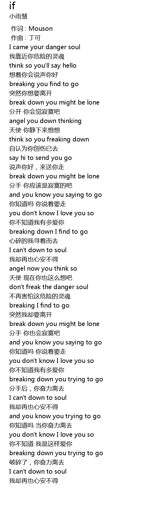 | [00:00.000] | 作词 : Mouson |