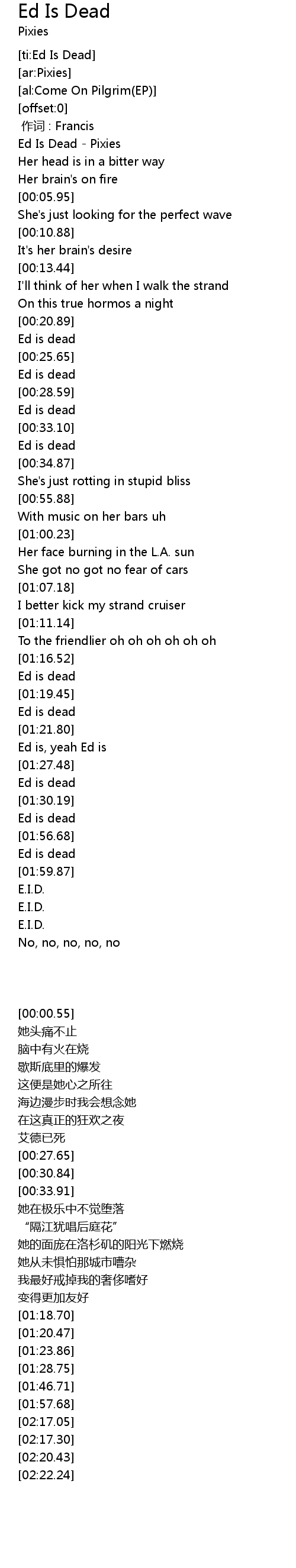| [00:00.55] | Ed Is Dead Pixies |