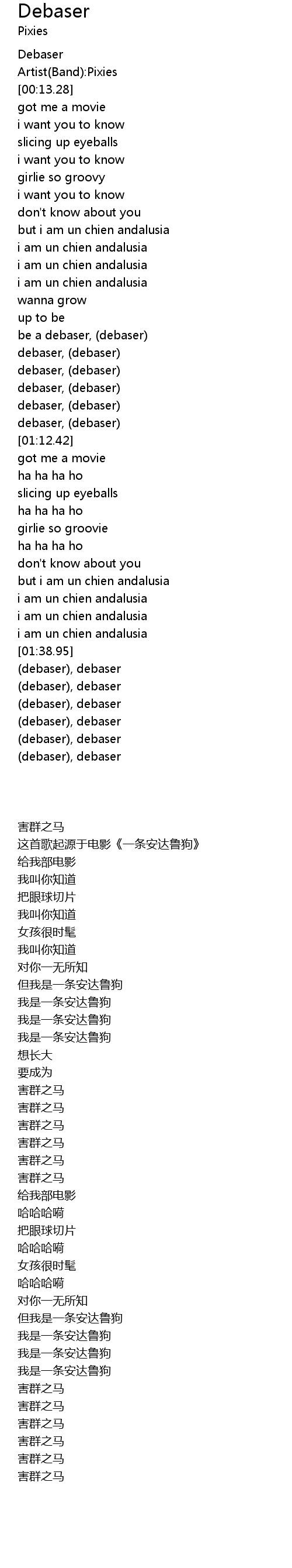 | [00:52.64] | be a debaser, (debaser) |