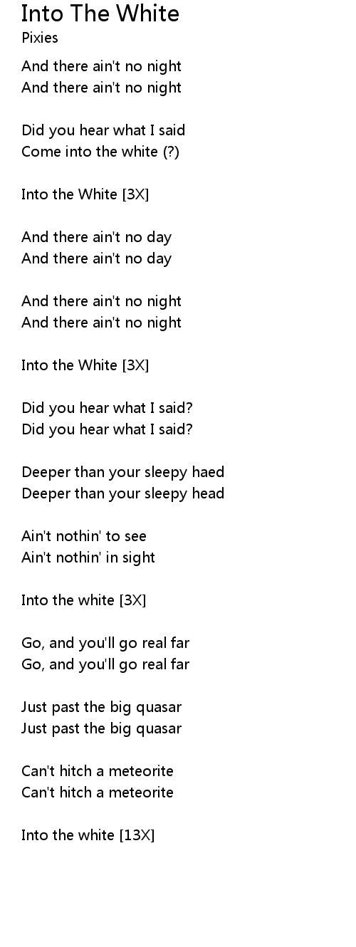 Come into the white (?) |