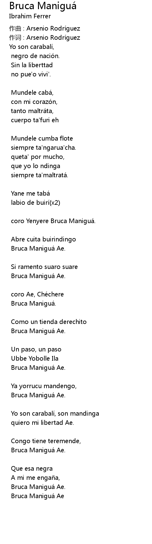 | 歌曲 | Bruca Maniguá |
