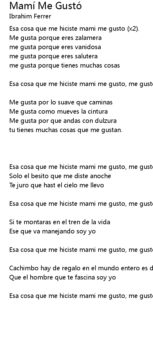 Esa cosa que me hiciste mami me gusto, me gusto (x2). |