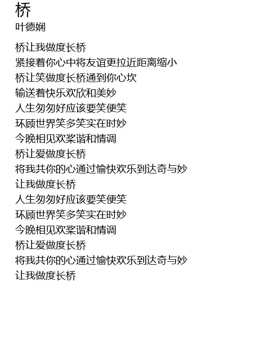 | [00:36.15] | 桥让笑做度长桥通到你心坎 |