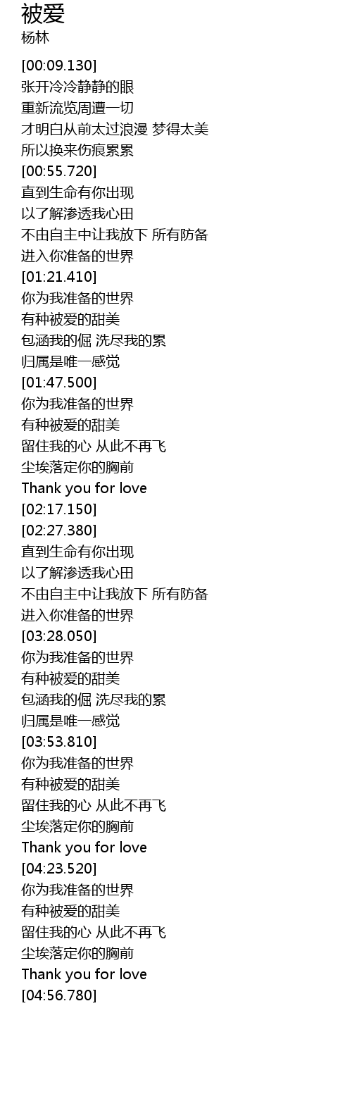 | [04:41.510] | 留住我的心 从此不再飞 |