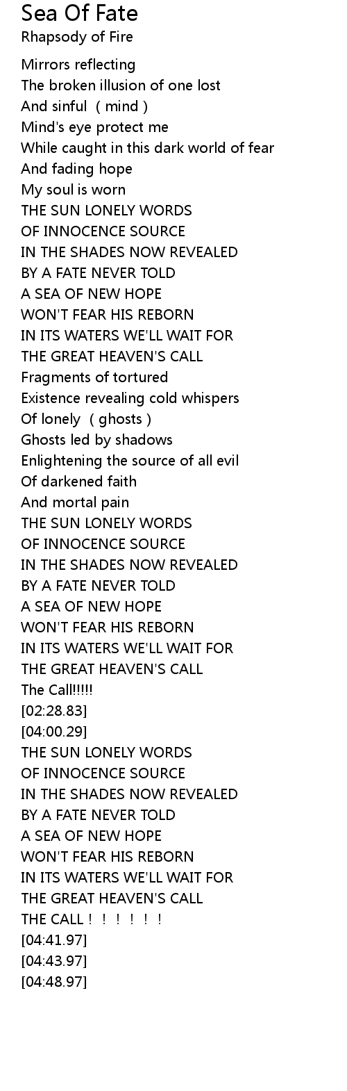 | [02:03.57] | BY A FATE NEVER TOLD |