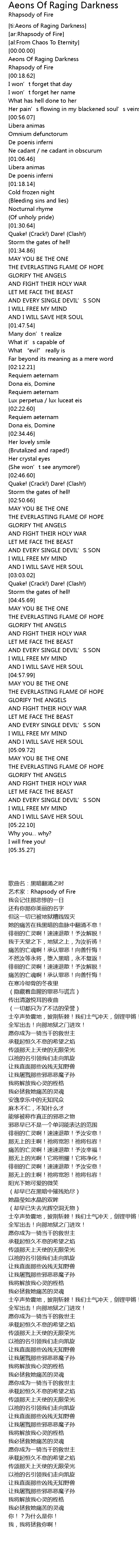 | [01:38.10] | 传颂那天上天使的无限荣光 |