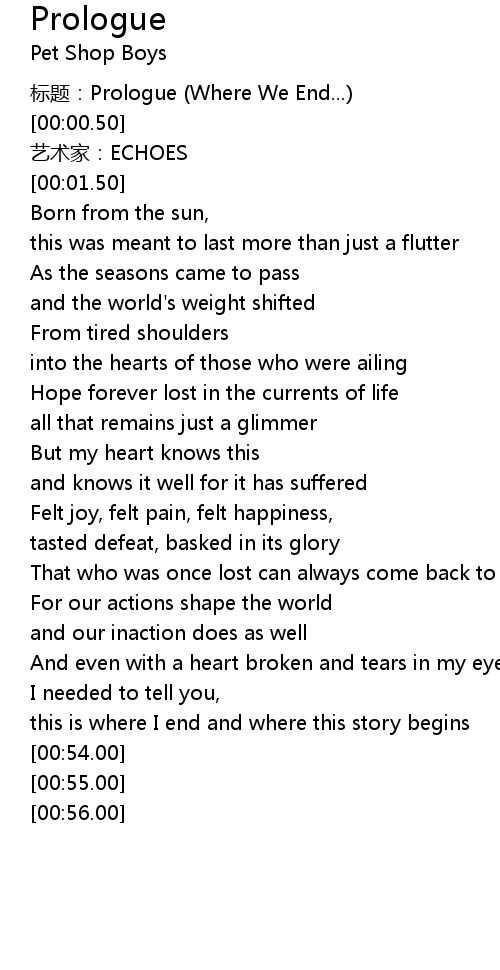 | [00:00.00] | 标题:Prologue (Where We End...) |