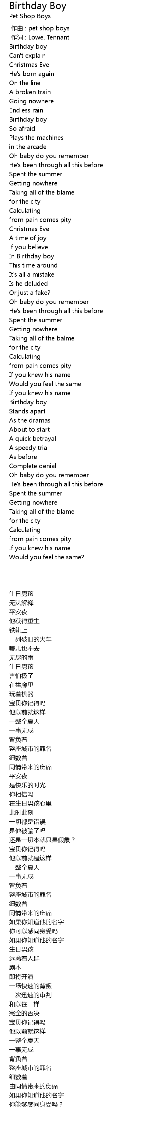 | [00:00.00] | zuò qǔ : pet shop boys |