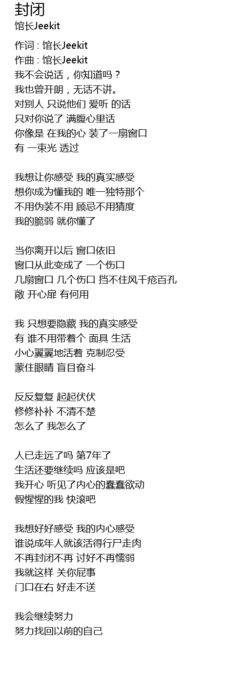 | 作词 : 馆长Jeekit | |