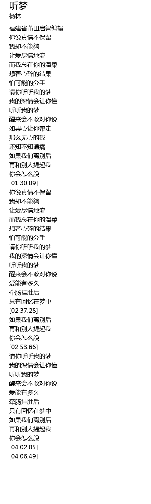 | [03:27.77] | 听听我的梦 |