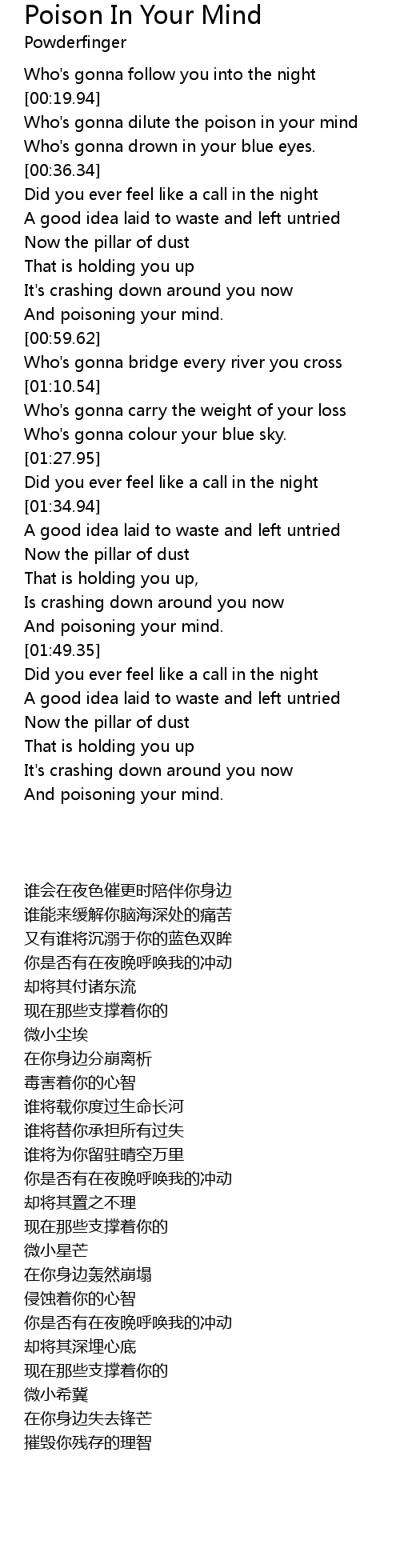 Who's gonna dilute the poison in your mind |