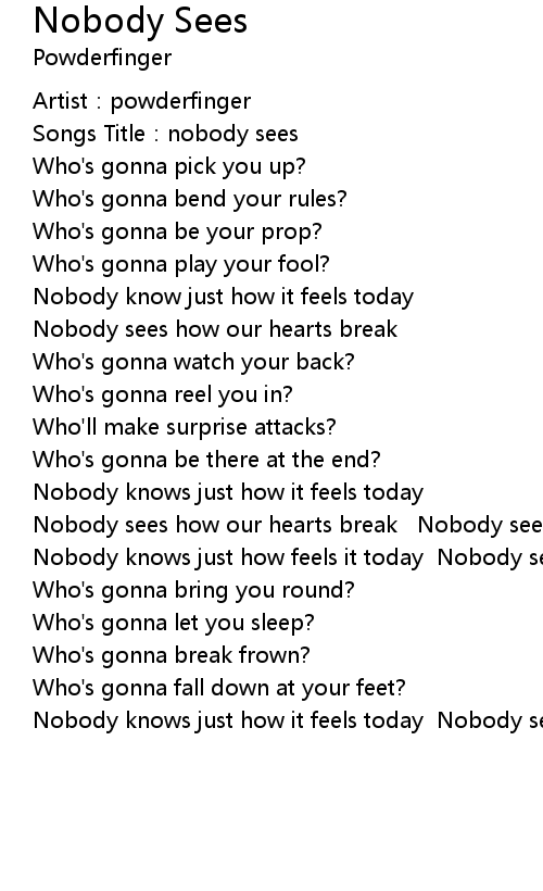 | [02:01.35] | Nobody sees how our hearts break Nobody sees how our hearts break Nobody knows just how feels it today Nobody sees how our hearts break |