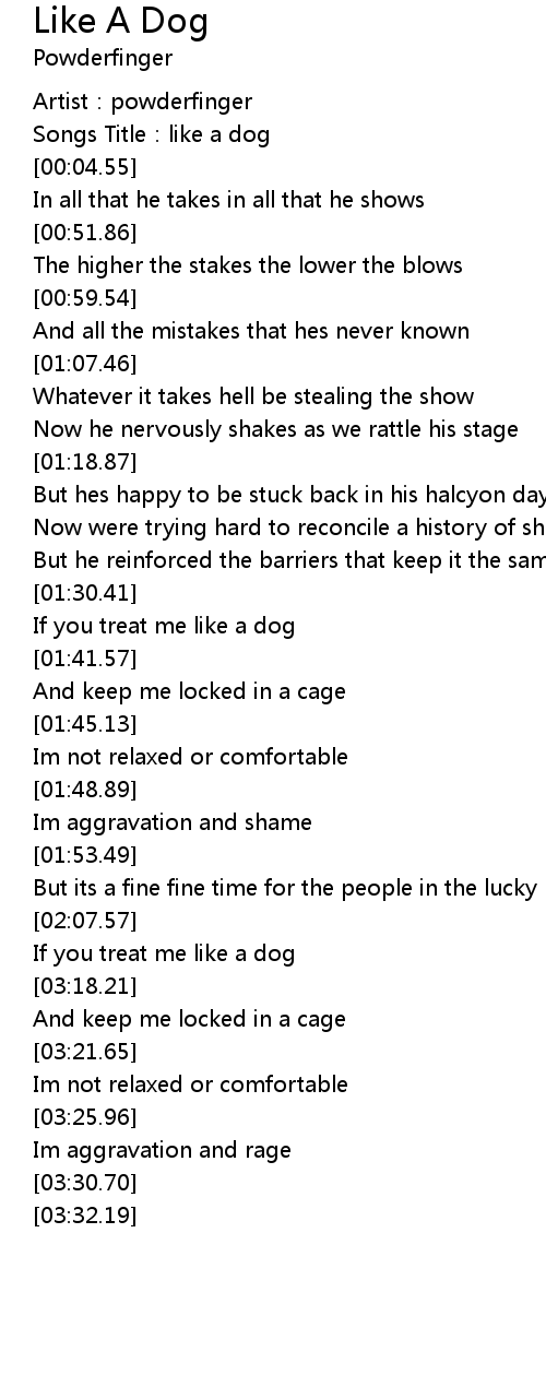 | [01:38.83] | If you treat me like a dog |