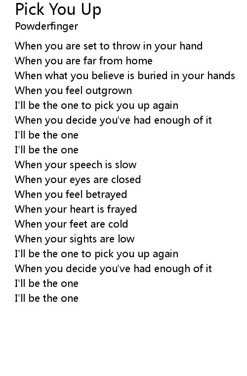 I'll be the one to pick you up again |