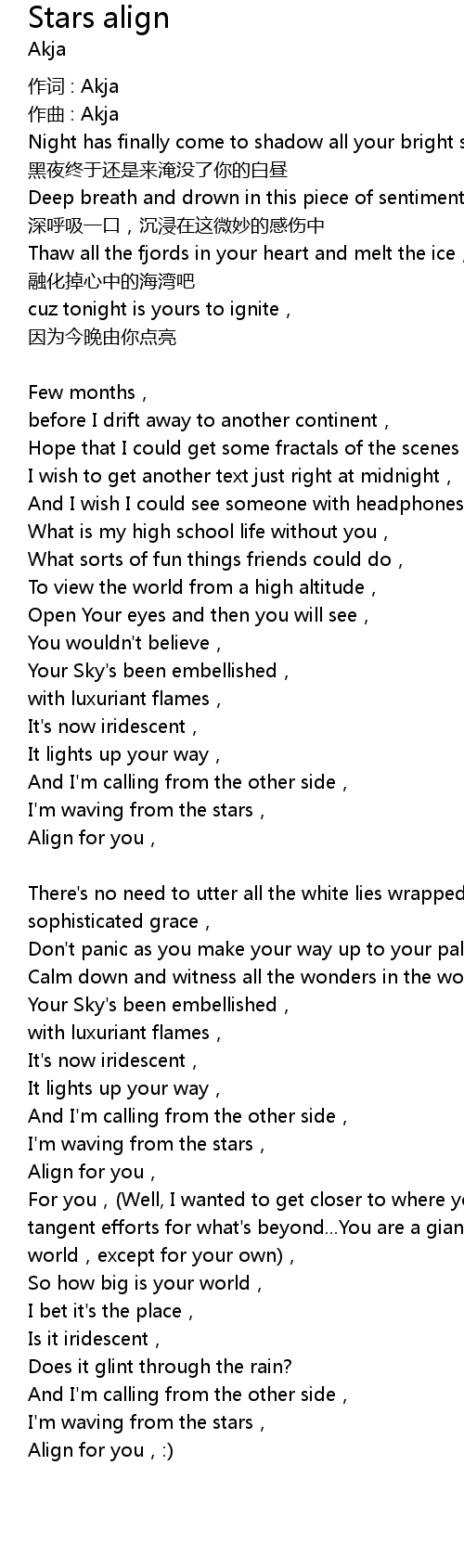 | I'm waving from the stars, | |