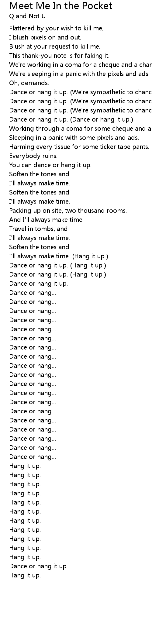Dance or hang it up. (Hang it up.) |