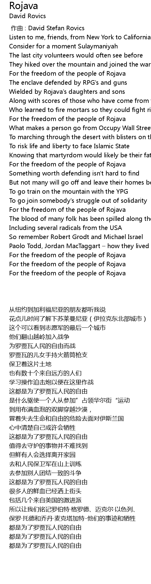 | 歌曲 | Rojava |