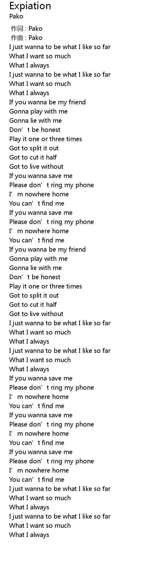 | [00:00.000] | 作词 : Pako |