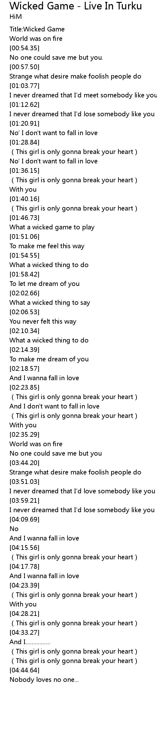 | [00:00.95] | Title: Wicked Game |