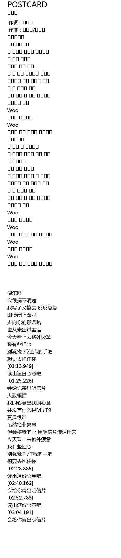 但会将我的心 用明信片传达出来 |