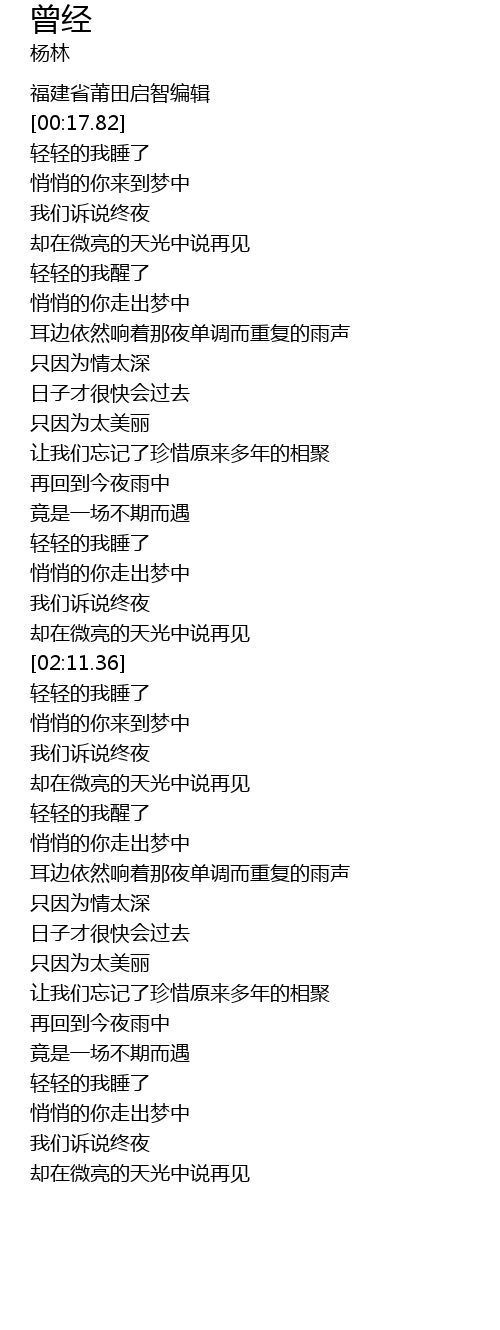 [03:21.16] 耳边依然响着那夜单调而重复的雨声