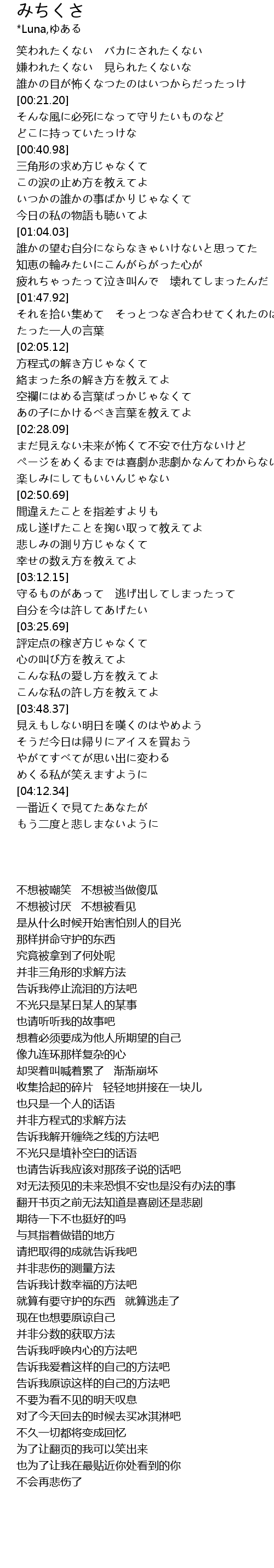 | [00:00.95] | 笑われたくない バカにされたくない |