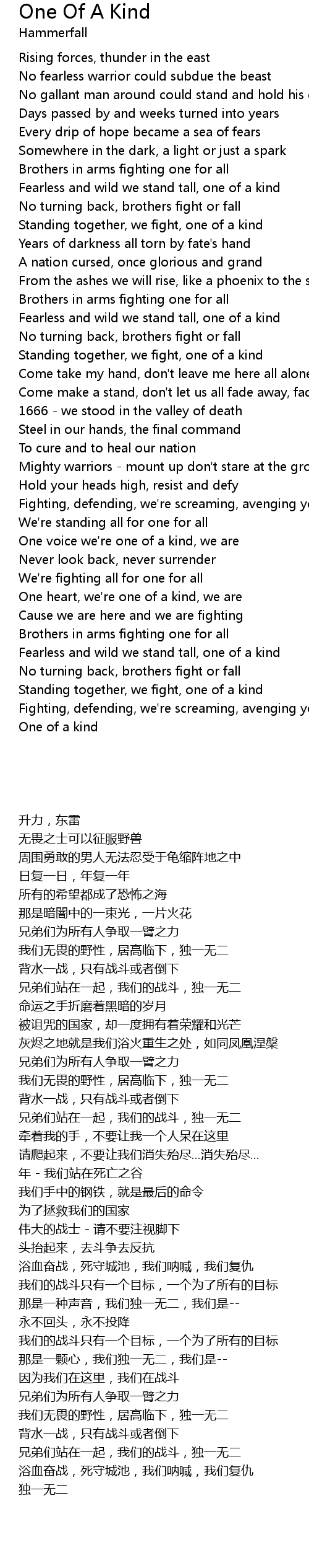 Standing together, we fight, one of a kind |