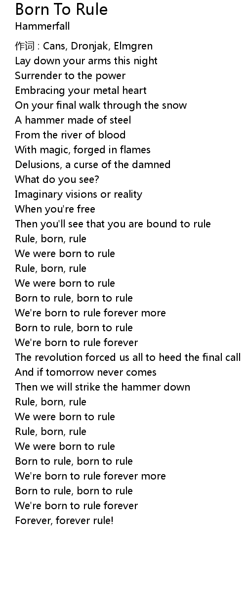 | Born to rule, born to rule | |