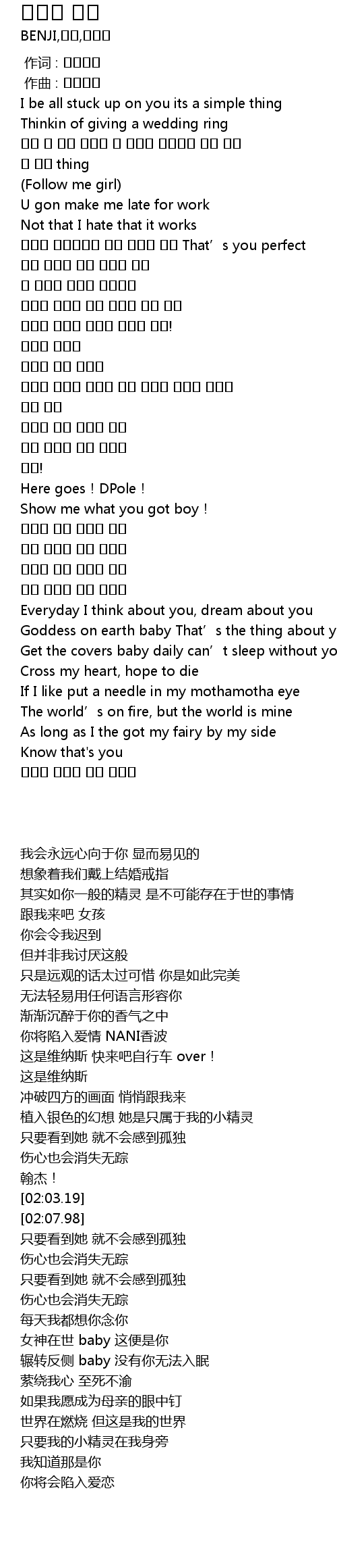 | [00:08.31] | I be all stuck up on you its a simple thing |