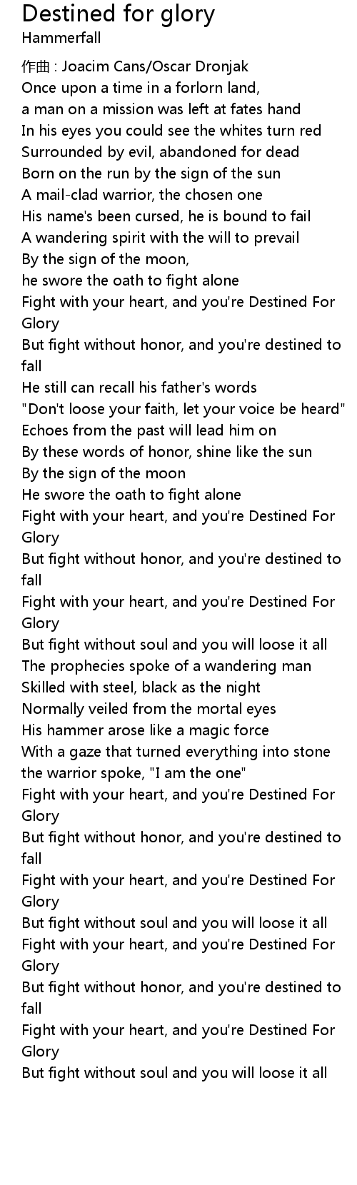 | 歌曲 | Destined for glory |