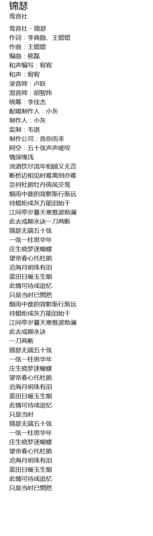 | [00:01.677] | 鸾音社 - 锦瑟 |