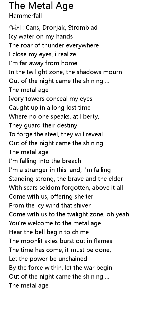 | 歌曲 | The Metal Age |