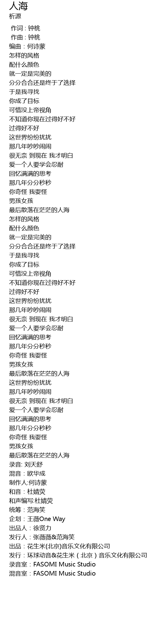 | [03:25.14] | 混音室:FASOMI Music Studio |