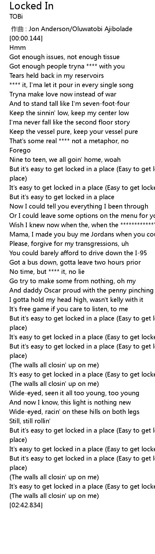| [02:27.422] | It's easy to get locked in a place (Easy to get locked in a place) |