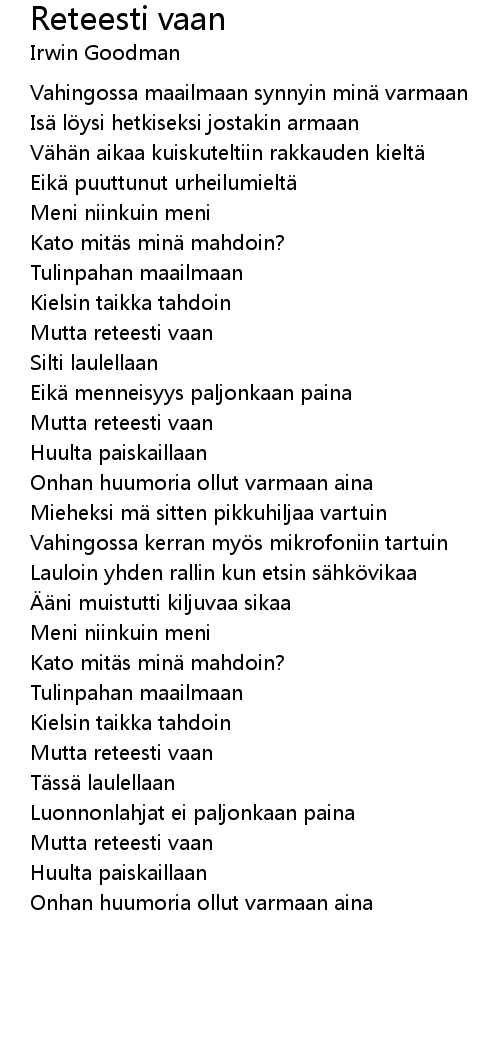 | Lauloin yhden rallin kun etsin s hk vikaa | |