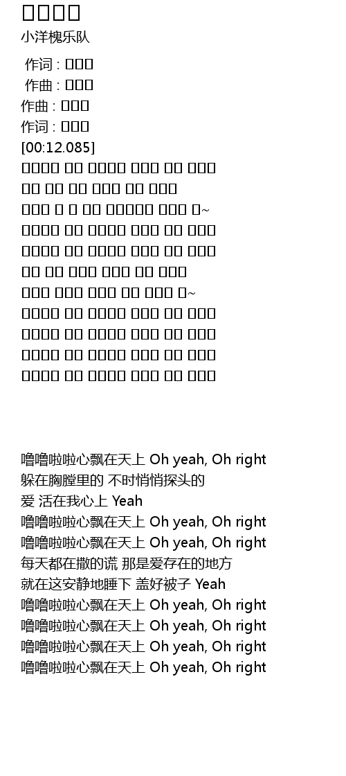| [00:13.132] | 噜噜啦啦心飘在天上 Oh yeah, Oh right |