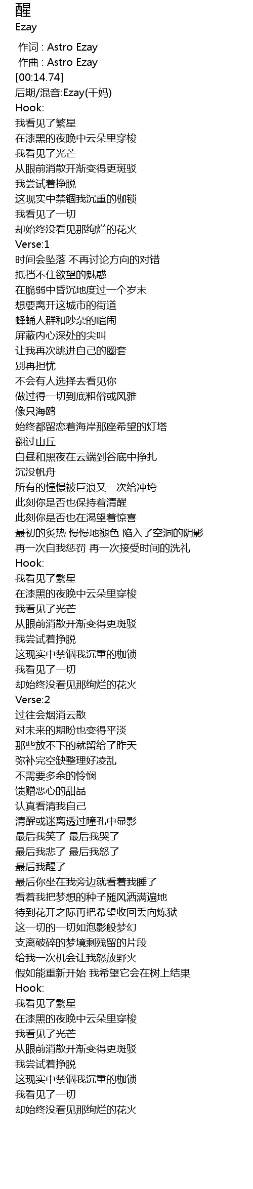 | [00:00.000] | 作词 : Astro Ezay |