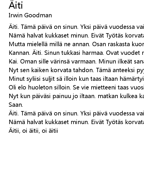 | N m halvat kukkaset minun. Eiv t Ty t s korvata voi lain | |