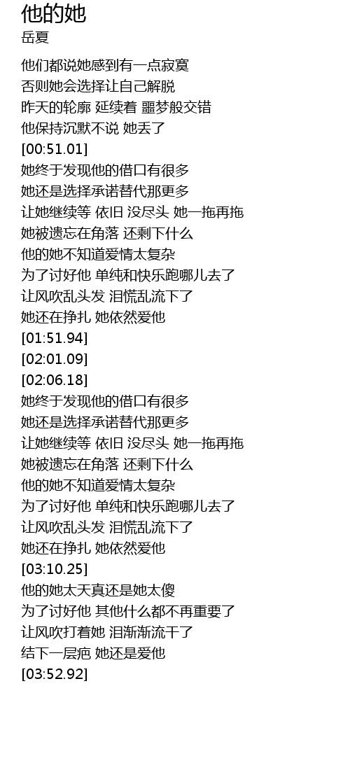 | [02:41.37] | 他的她不知道爱情太复杂 |