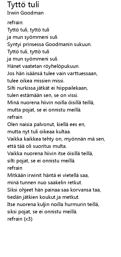 | Tytt tuli, tytt tuli | |