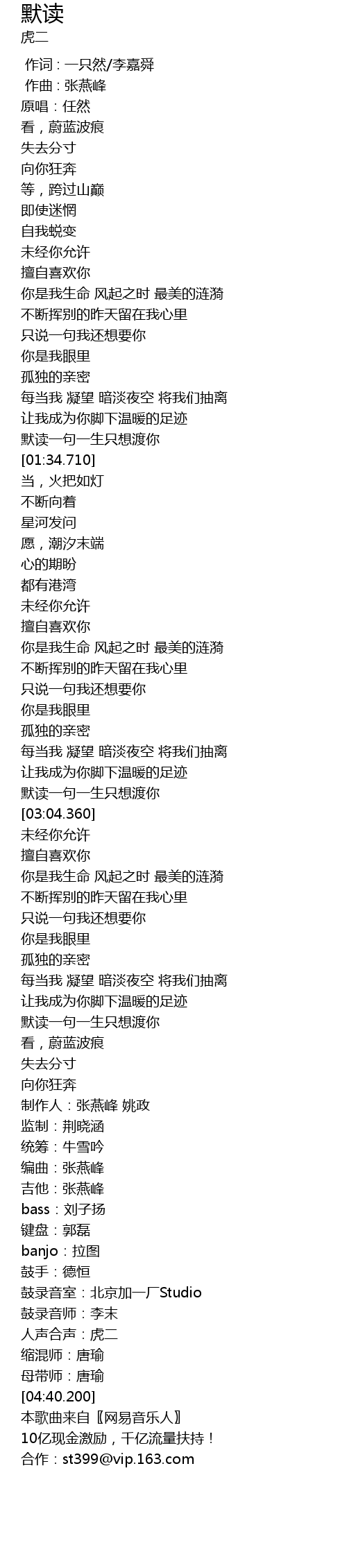 | [02:57.790] | mò dú yī jù yī shēng zhǐ xiǎng dù nǐ |