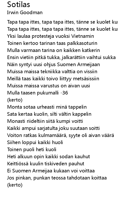 | Tapa tapa ittes, tapa tapa ittes, t nne se kuolet kumminkin | |