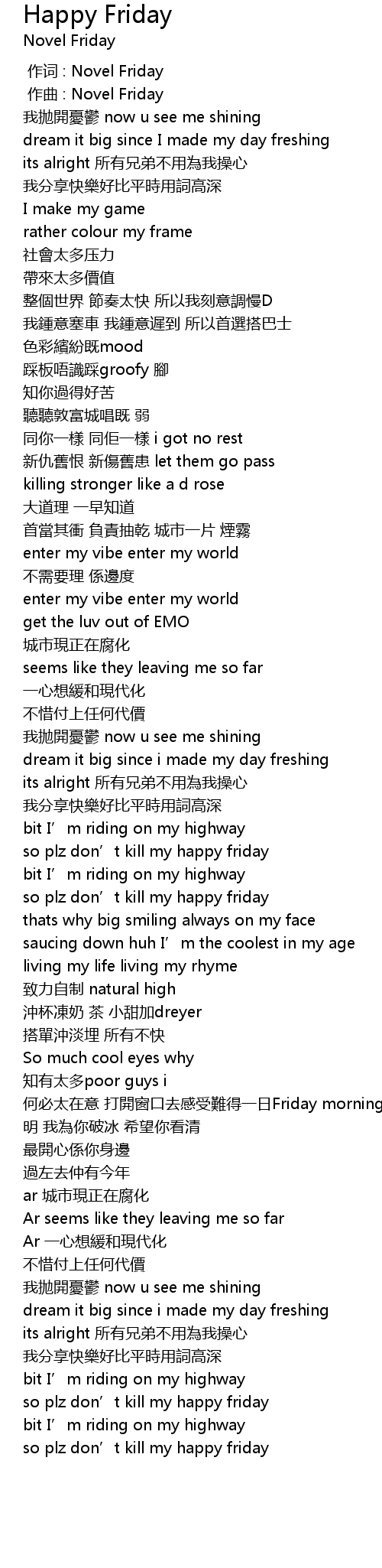 | [02:02.00] | so plz don’t kill my happy friday |