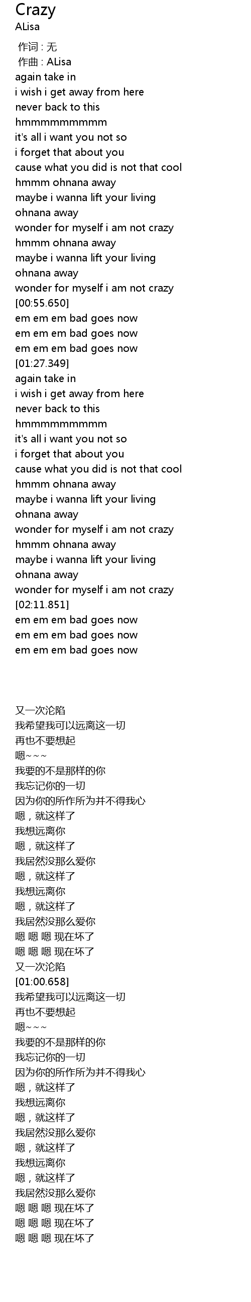 | [00:01.000] | zuò qǔ : ALisa |