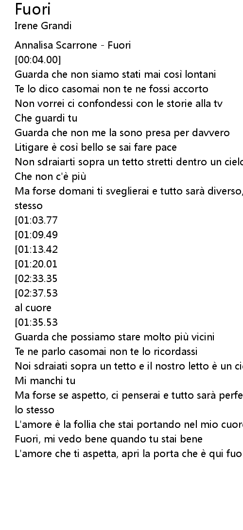 | [00:02.00] | Annalisa Scarrone Fuori |