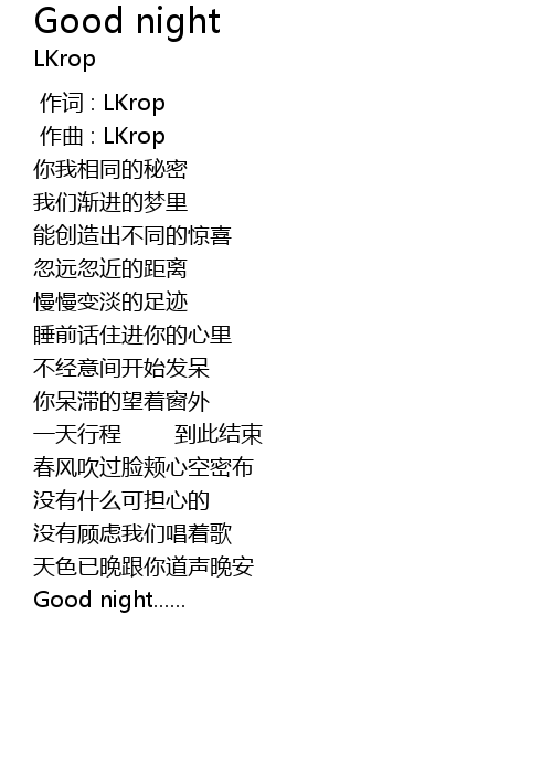 | [00:00.000] | 作词 : LKrop |