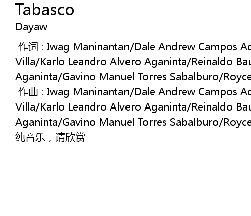 | [00:01.000] | 作曲 : Iwag Maninantan/Dale Andrew Campos Adeva/Ena Patricia Mori Villa/Karlo Leandro Alvero Aganinta/Reinaldo Bautista III/Luis Gabriel Alvero Aganinta/Gavino Manuel Torres Sabalburo/Royce Milan Baronia |