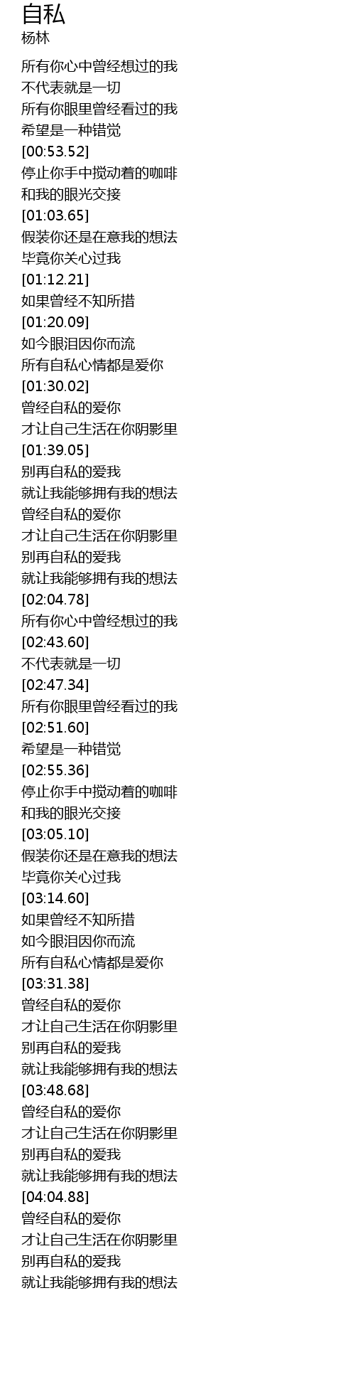 | [03:33.45] | céng jīng zì sī de ài nǐ |
